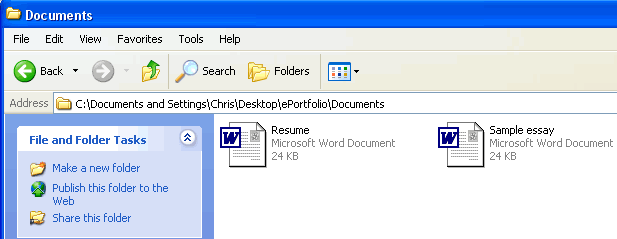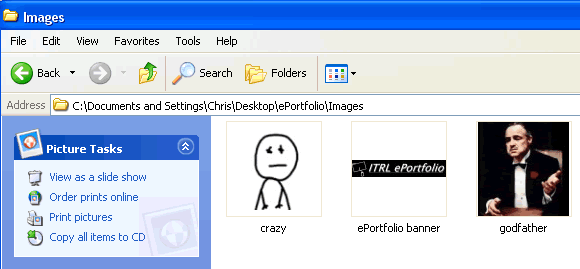 Before you can add your own pictures and documents to your Web pages, you need to transfer the files to their corresponding folders within your ePortfolio folder. By copying all of the files into your ePortfolio folder, you will ensure that all of your documents and images will remain intact when you put your ePortfolio on your Web space.