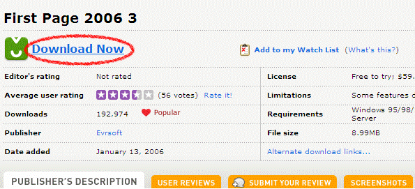 Since you may not have any experience working with html and building Web pages, it might be a good idea to acquire an html editing program. If you already have a Web design program (ie. Dreamweaver, Homesite etc) then by all means use it to edit the content of your ePortfolio. However, since these programs are usually expensive, you may want to download a free html editor rather than purchasing one of these programs. One easy to use program is Evrsoft First Page, which you can download for free and use to edit your ePortfolio content. Feel free to use any html editor that you are comfortable with, but if you would like a detailed set of instructions to follow, we recommend that you complete the First Page download and follow the corresponding instructions below.