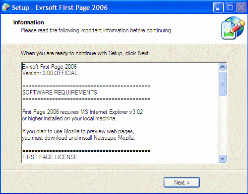 - This will open the Evrsoft First Page Setup Wizard. Click Next to continue.